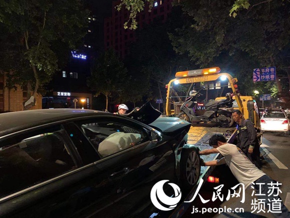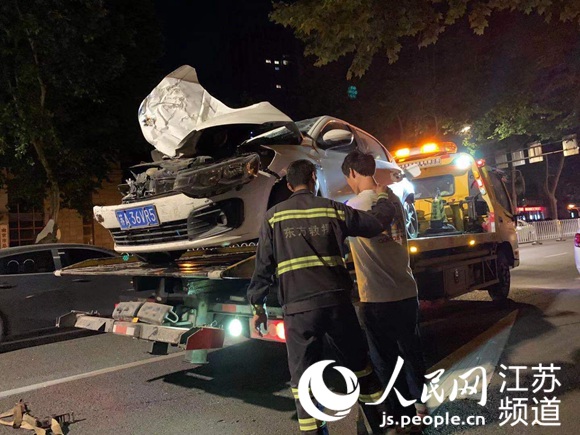 29日晚,案發現場受損車輛被拖走。周筱赟攝