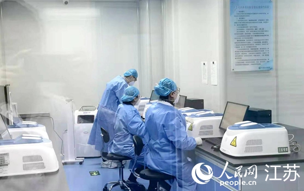 醫務人員在加班加點對新冠核酸檢測樣本進行檢測。東海縣委宣傳部供圖