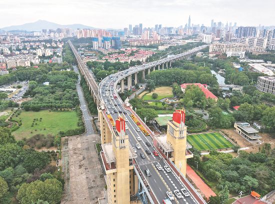 9月30日傍晚,南京长江大桥上车流如织,迎来假日车辆出行高峰。宋宁 摄…