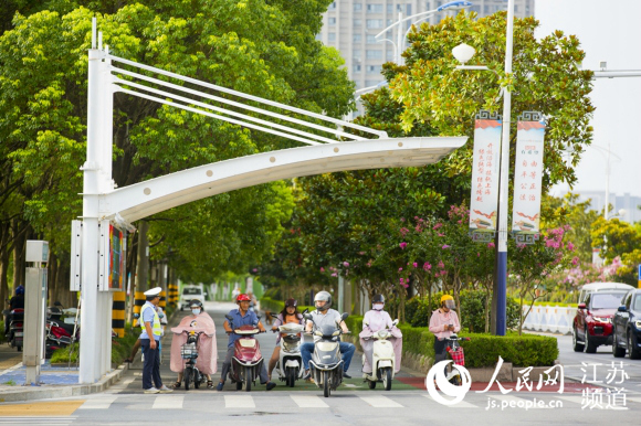 市民们在新建的遮阳挡雨棚下等红灯。刘进涛摄 “去年的时候,遮阳挡雨棚还只是市中心有,没想到,我们住在北边的老百姓也能享受到这个‘福利待遇’。” 日前,江苏省东台市海陵路与黄海路交界处,新建的白色遮阳挡雨棚引得往来行人连连称赞。 为了让群众出行更方便、交通更有序,东台结合党…