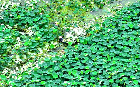 18日,西顺河镇藕虾共作塘里的荷叶迎来了采摘季,当地种植户抓紧组织人力进行采摘、分拣、裁切,部分用于制作荷叶茶、中药材,部分销售到外地用于制作荷叶饭、叫花鸡。(殷 潮)…