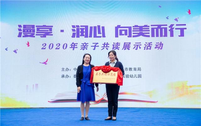 活动现场,泰兴市委常委、宣传部部长张红霞为泰兴市实验幼儿园“亲子共读示范园”授牌,泰兴市新华书店向学校赠送了书籍。