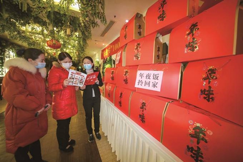 二十五日,南京市民在栖霞区和燕路一饭店预订外卖年夜饭。本报记者 陈 俨 摄