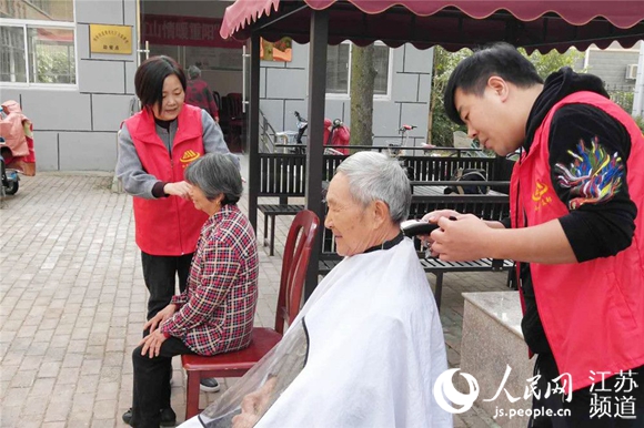 宿豫区组织志愿者进社区为老人义务理发。沈晶晶摄