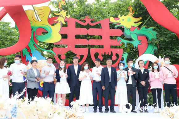 5月20日东台西溪天仙缘爱情小镇为33对新人举办集体婚礼。晓丽摄