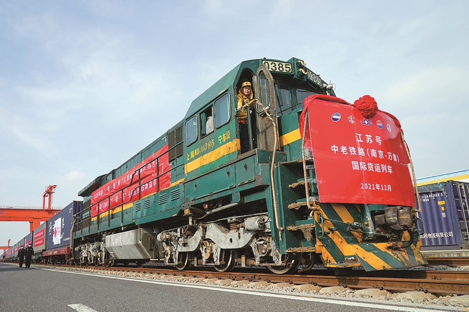 本报讯 (记者 梅剑飞 田墨池) 12月8日,载有76个标箱出口货物的首趟“江苏号”中老铁路国际货运列车从南京货运中心尧化门铁路货场启程,预计6天左右抵达老挝首都万象,全程运行3500余公里。