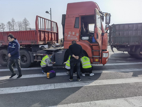 交通部门对汽车尾气进行检测。赣榆区委宣传部供图