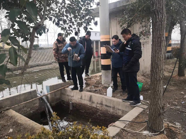 执法人员对企业废水采样监测。赣榆区委宣传部供图