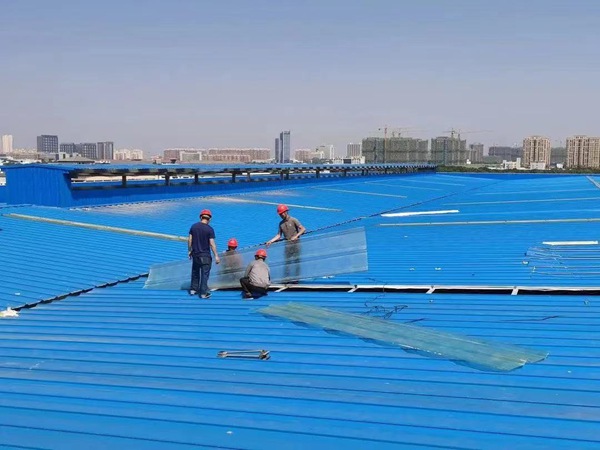 建设方正在屋顶补装钢结构屋面。孔阳婷摄