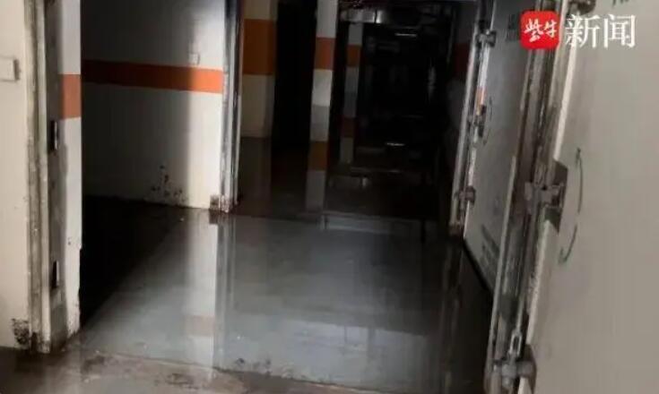 升龙桃花园著尚院小区内部的步道台阶多处是泥浆,保洁正在冲洗地面,而小区的地下车库以及非机动车库积了很深的水。