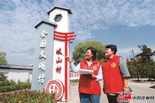 岐山村新时代文明实践站志愿者在村内进行走访。