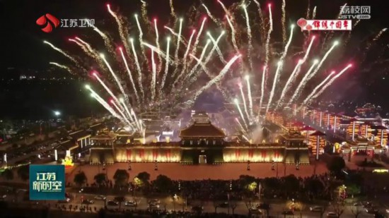 随着夜幕降临,传承千年的非遗技艺打铁花表演精彩上演,火树银花,祈愿新的一年吉祥如意。在淮安西游乐园,1600架无人机腾空而起,组成玉兔辞旧岁、金龙接新春的造型图案,和漫天的焰火一起,将新春的夜空装点成一场光影盛宴。游客张胜男说,我们是龙的传人,今年又刚好是龙年,感觉特别应景,满满的科技感、满满的年味。