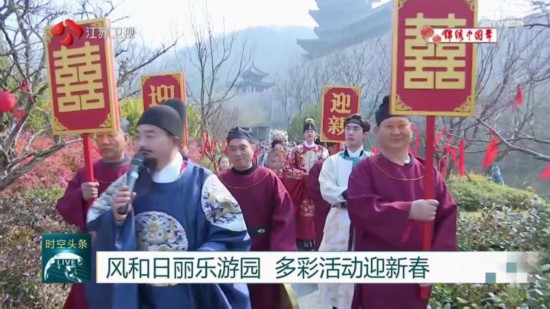 天气晴好激发了游客们的外出热情。在南京园博园,春节期间,大型实景剧目《家有喜事》每天都在精彩上演,为游客们奉上了比武招亲、花船迎亲等精彩剧目,氛围感十足。一位游客说,园博园挺漂亮,江南园林还是很不错的,印象也蛮好的,很有春节气氛。