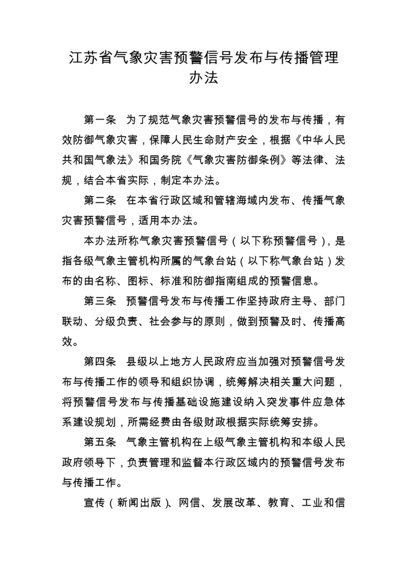 附:《江苏省气象灾害预警信号发布与传播管理办法》