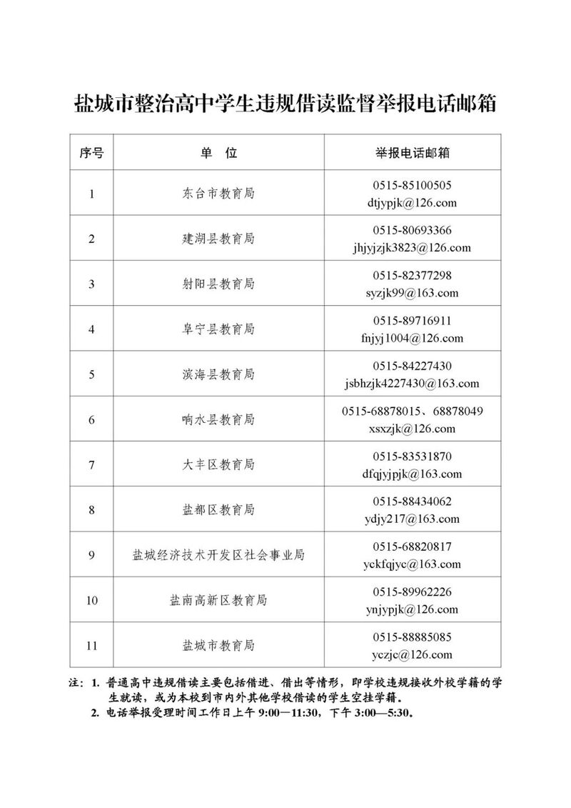 举报方式公布 盐城亮剑整治高中违规借读乱象