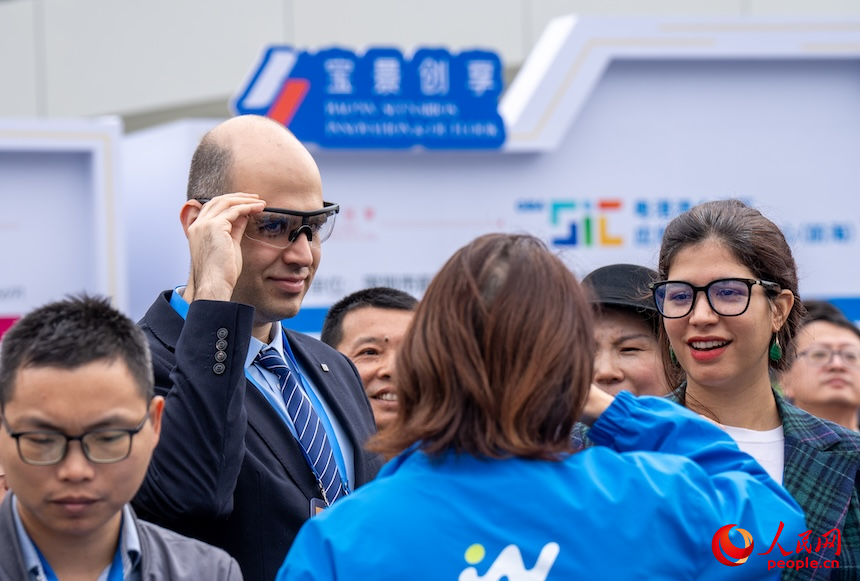 外国客商体验智能眼镜产品。人民网 王星摄