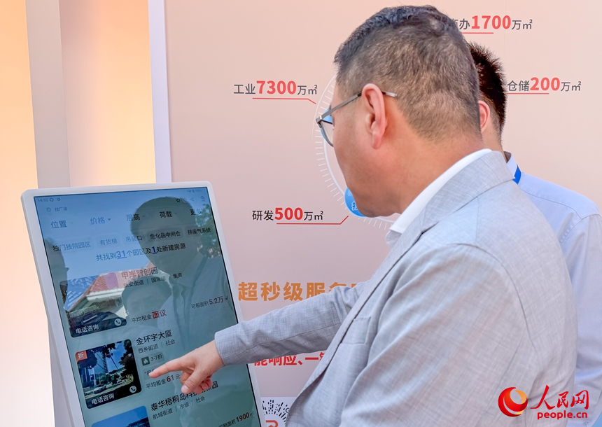 大会现场,与会者体验“宝安AI智选空间”平台。人民网 王星摄