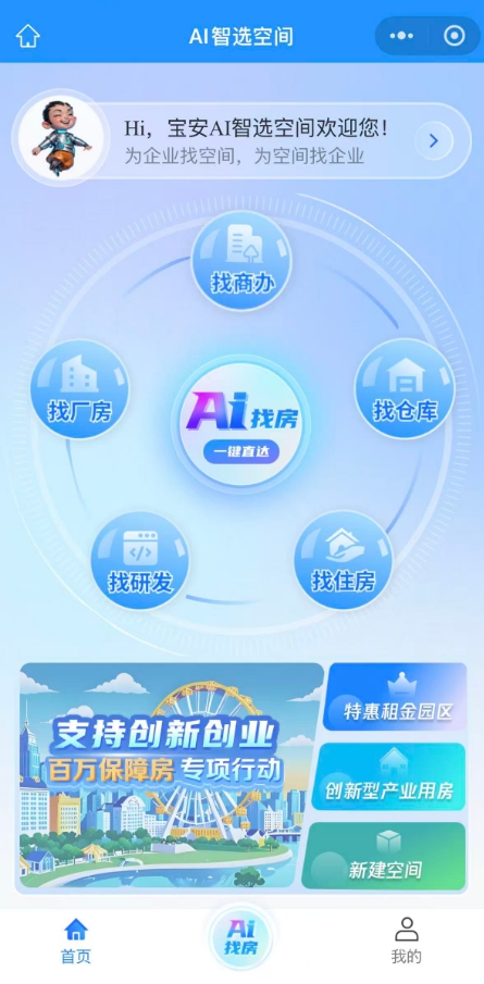上线的“宝安AI智选空间”平台,集纳了宝安区2600多个园区、超1亿平方米产业空间数据,具有AI语音输入直达需求、地图筛选精准定位、线上视频实景看房、全流程一键办理等四大核心功能。