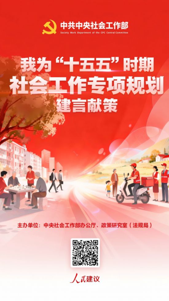 收藏为深入学习贯彻党的二十届四中全会精神,贯彻落实习近平总书记对“十五五”规划编制工作的重要指示精神,坚持科学决策、民主决策、依法决策,高质量编制“十五五”时期社会工作专项规划,中央社会工作部现诚邀社会各界,为规划编制建言献策。