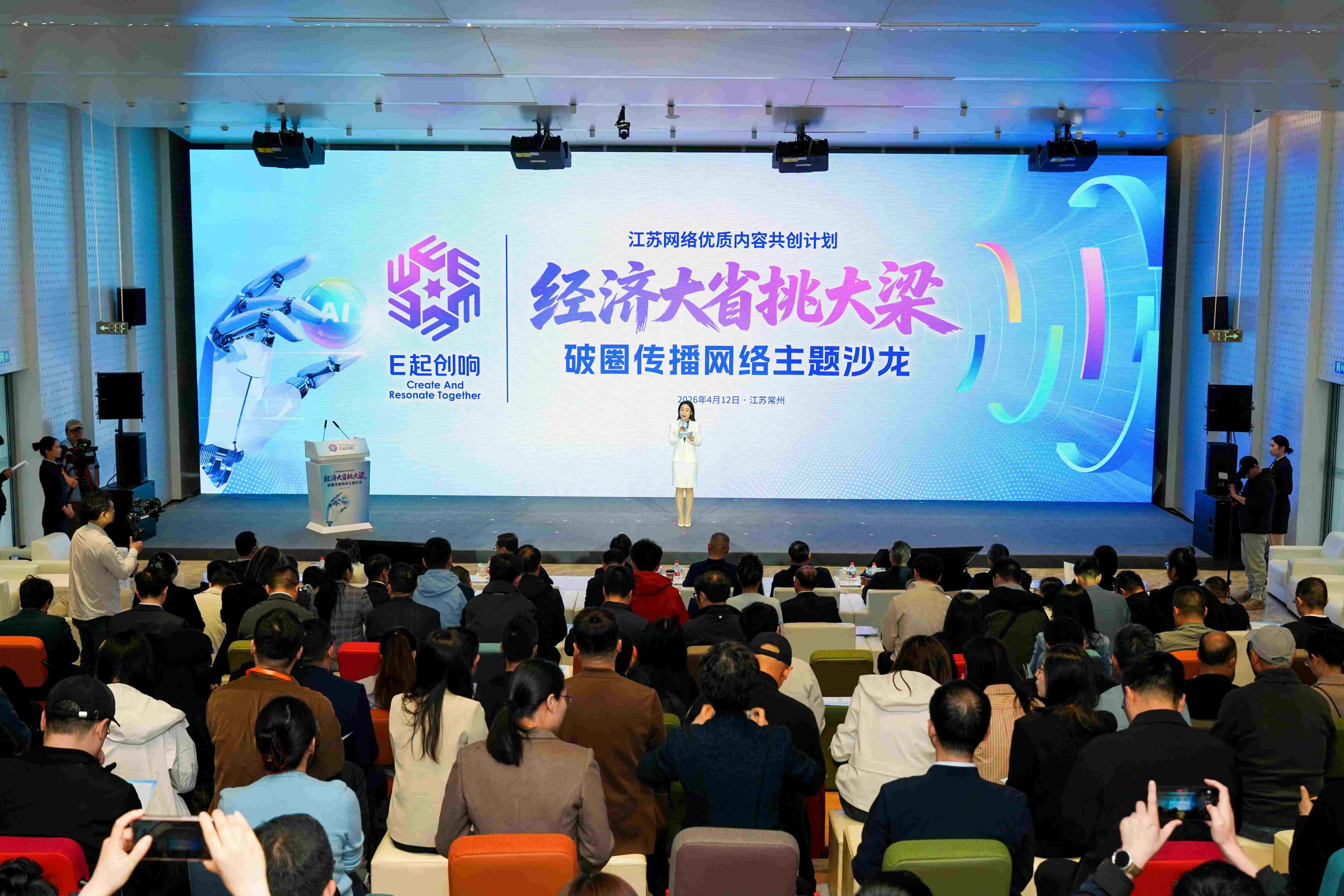 人民网常州4月12日电(李欣阳) “经济大省挑大梁”破圈传播网络主题沙龙12日在常州西太湖人工智能国际社区举行。活动由江苏省委网信办主办,聚合地方、媒体、平台、产业、学界代表,共探产业硬实力与传播破圈的融合路径。